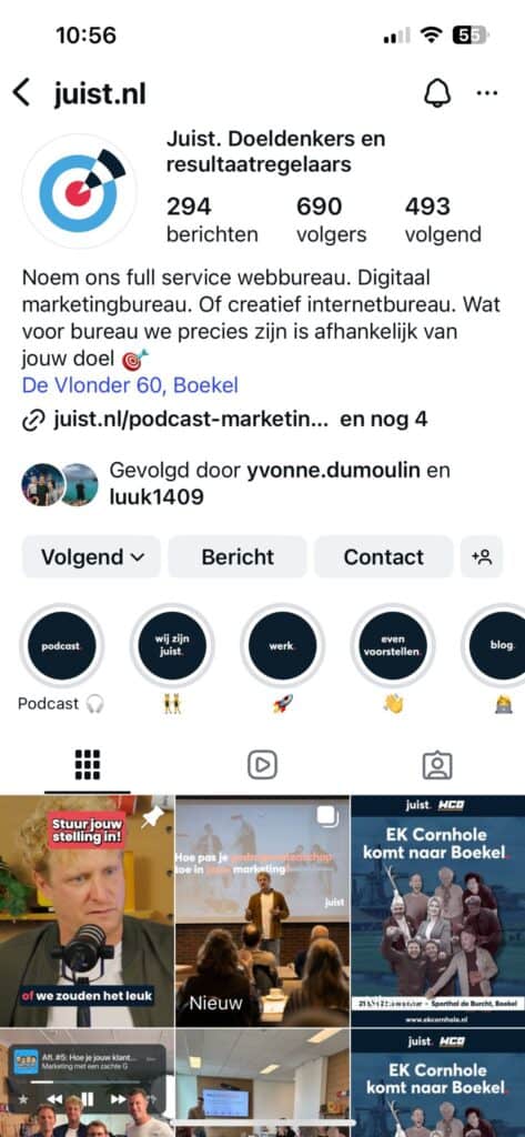 Een goed begin is het halve werk en dat geldt zeker voor je Instagram-profiel. Je naam en gebruikersnaam zijn de eerste plekken waar Instagram naar kijkt, dus zorg dat daar je belangrijkste zoekwoord in terugkomt. Ook je bio is een kans om duidelijk te maken wat je doet: gebruik korte, heldere zinnen met woorden waar jouw doelgroep ook daadwerkelijk op zoekt.